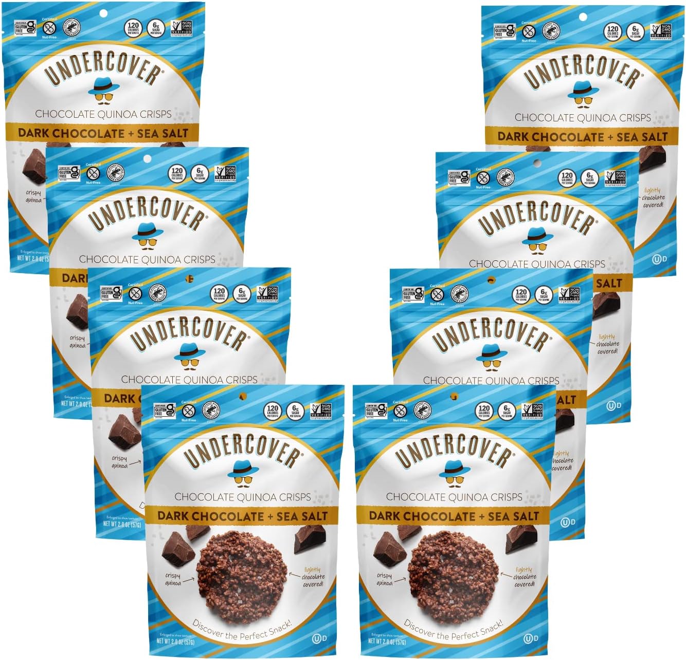 Undercover Snacks Chocolate Crispy Quinoa Snack – Dark Chocolate + Sea Salt – Gluten-Free, Nut-Free Bags, 2 Ounce (Pack Of 8)