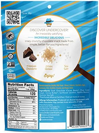 undercover snacks chocolate crispy quinoa snack dark chocolate + sea salt gluten free, nut free bags, 2 ounce (pack of 8)Undercover Snacks Chocolate Crispy Quinoa Snack – Dark Chocolate + Sea Salt – Gluten-Free, Nut-Free Bags, 2 Ounce (Pack Of 8)